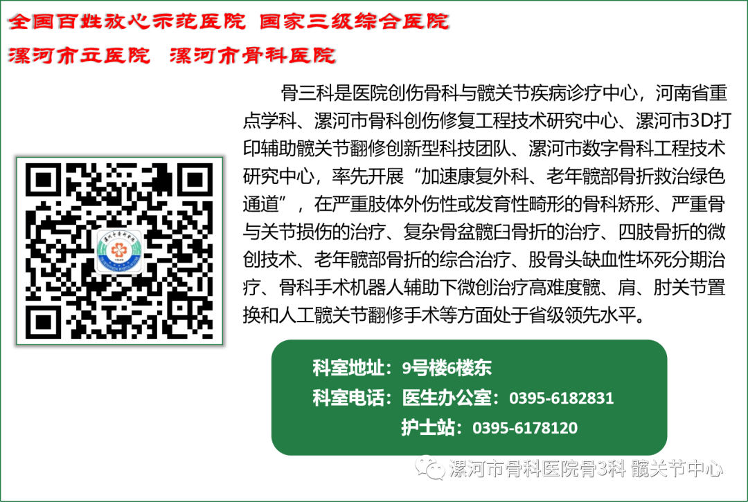 骨三科作為漯河市髖關(guān)節(jié)治療中心,90歲以上老人,占據(jù)科室住院患者1/3以上,為更好的為老年患者服務(wù),骨三科開辟了老年髖部骨折患者綠色通道,精準(zhǔn)治療,使老年髖部骨折患者快優(yōu)康復(fù),避免長(zhǎng)期臥床,減少并發(fā)癥的發(fā)生,大大的降低了老年髖部骨折一年內(nèi)死亡率。近年來(lái),我院出臺(tái)了諸多方便老年人就醫(yī)的服務(wù)措施,持續(xù)提升患者就醫(yī)服務(wù)體驗(yàn),以實(shí)際行動(dòng)為患者送溫暖、辦實(shí)事、做好事,營(yíng)造敬老愛(ài)老助老的良好氛圍。