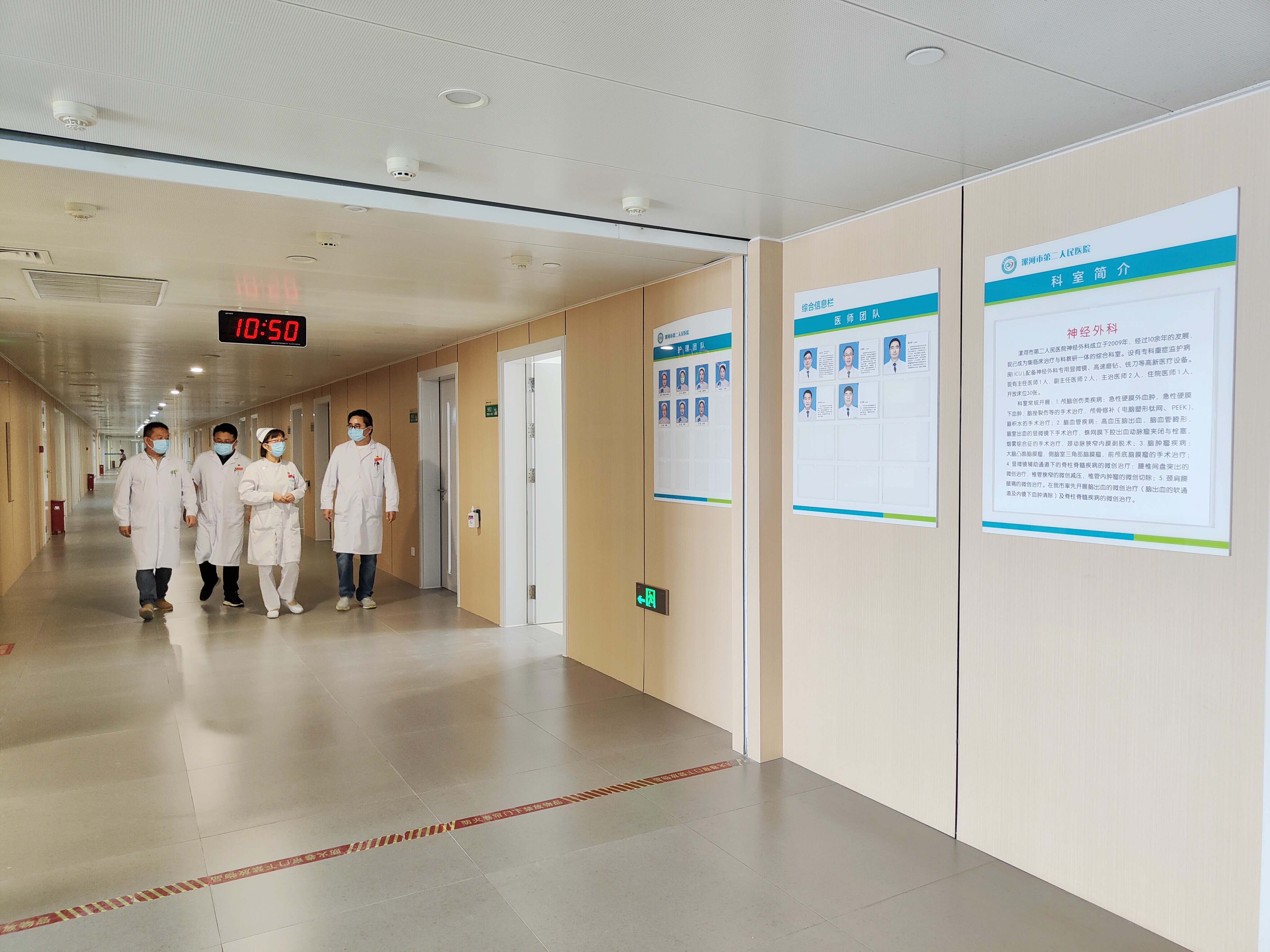 搬遷后的神經(jīng)外科新病區(qū)位于2號樓(門診部)9樓,設(shè)置病床45張,設(shè)有??浦匕Y監(jiān)護病房( ICU ),擁有主任醫(yī)師1人、副主任醫(yī)師2人、主治醫(yī)師2人、住院醫(yī)師1人,配備了專用顯微鏡、高速磨鉆、銑刀等高新醫(yī)療設(shè)備,科室是醫(yī)院重點學科,醫(yī)護團隊技術(shù)精湛、團結(jié)互助、具有豐富的臨床理論與實踐技術(shù)??砷_展顱腦創(chuàng)傷類疾病、腦血管疾病、腦腫瘤疾病等的預防與規(guī)范治療;顯微鏡輔助通道下脊柱脊髓疾病的微創(chuàng)治療;頸肩腰腿痛的微創(chuàng)治療。在我市率先開展了腦出血的微創(chuàng)治療(腦出血的軟通道及內(nèi)鏡下血腫清除)及脊柱脊髓疾病的微創(chuàng)治療。