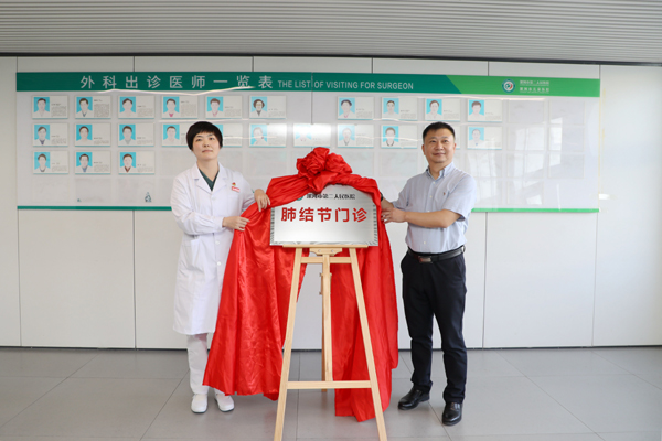 揭牌儀式上,黨委書記魏松、院長(zhǎng)王瑾共同為“肺結(jié)節(jié)門診”揭牌。