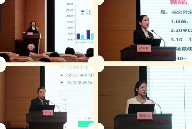 河南省護(hù)理學(xué)會(huì)糖尿病護(hù)理專業(yè)委員會(huì)主任委員袁舉進(jìn)行授課,袁主委通過典型病例對(duì)糖尿病慢性并發(fā)癥發(fā)病的危險(xiǎn)因素、治療及護(hù)理進(jìn)行了分享,希望通過這次的學(xué)習(xí)在工作中加強(qiáng)糖尿病患者的綜合管理,積極采取干預(yù)措施,減少糖尿病患者并發(fā)癥的發(fā)生。