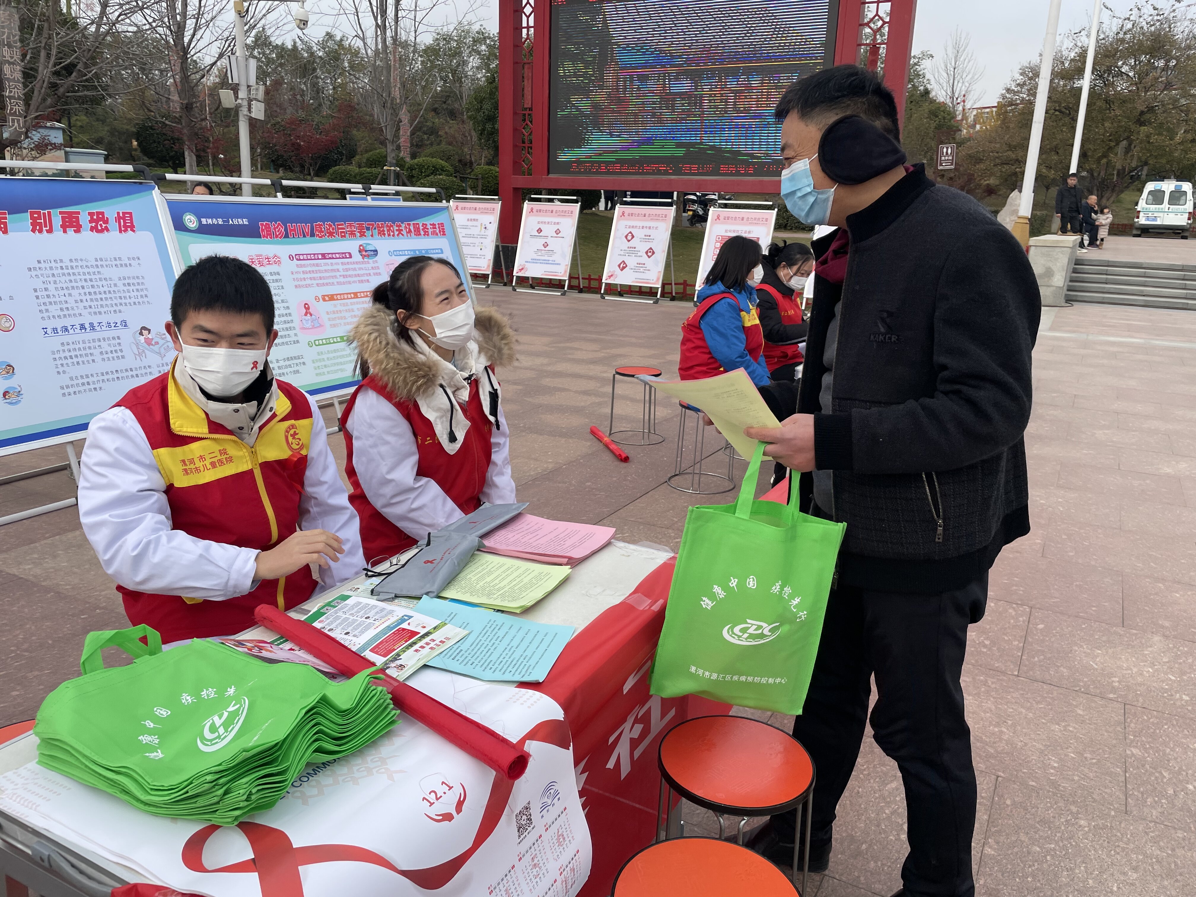 在第36個世界艾滋病日來臨之際,為了營造全民參與治艾防艾的宣傳氛圍,提高群眾對艾滋病的認(rèn)識,市二院積極響應(yīng)市衛(wèi)健委統(tǒng)一部署安排,于11月30日上午,組織疾控科、皮膚科、中醫(yī)針灸科、內(nèi)鏡室等相關(guān)科室專家、志愿者到紅楓廣場進(jìn)行“凝聚社會力量 合力共抗艾滋”主題宣傳活動。