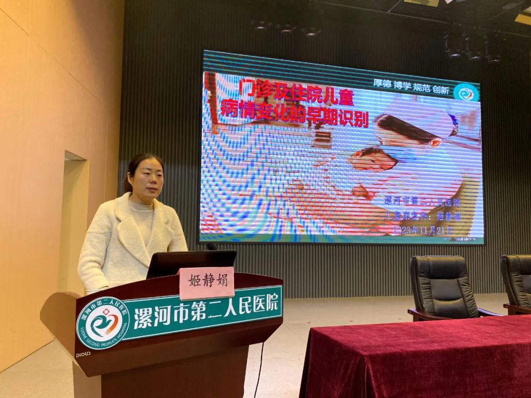 市二院兒童康復科護士長姬靜娟通過《門診及住院兒童病情變化的早期識別》,講述了兒童疾病早期識別與干預的重要性及兒童疾病管理與救治方面的相關知識。