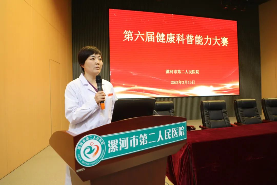 為進一步提升醫(yī)務(wù)工作者的健康科普能力,加強醫(yī)務(wù)工作者對健康工作方式的思考和拓展,營造全民關(guān)注健康科普的良好氛圍,助力健康漯河建設(shè),3月15日下午,按照院黨委工作安排,市二院在12樓學(xué)術(shù)報告廳舉辦了第六屆健康科普能力大賽。院長王瑾,副院長郭長根、紀(jì)委書記孟德陽、工會主席李世學(xué)出席比賽現(xiàn)場,部分職能科長、科室主任、護士長和不值班醫(yī)護人員代表150余人參會。