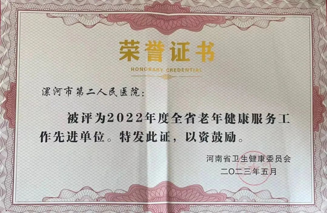 5月31日,河南省衛(wèi)生健康委發(fā)布關(guān)于表彰2022年度全省老齡工作和老齡健康工作先進(jìn)單位、先進(jìn)個(gè)人的通報(bào),市二院榮獲“2022年度全省老年健康服務(wù)工作先進(jìn)單位”殊榮。