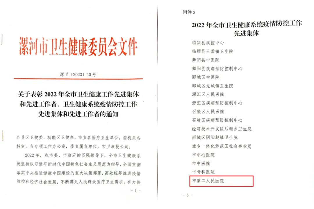 5月25日,市二院分別榮獲河南省2022年度“兩品一械”監(jiān)測(cè)工作先進(jìn)單位、漯河市2022年度“兩品一械”監(jiān)測(cè)工作先進(jìn)單位。