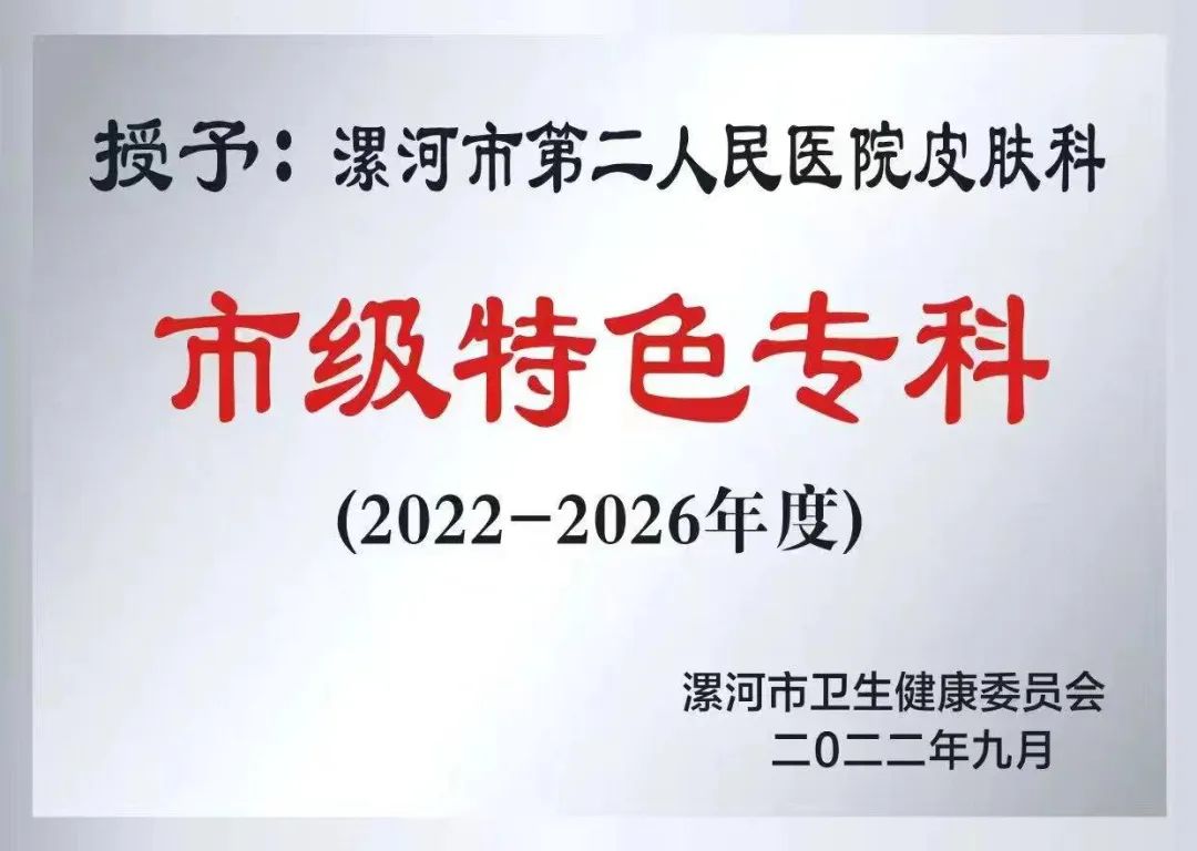 皮膚科經(jīng)過40多年的發(fā)展,目前為漯河市規(guī)模較大、技術(shù)力量雄厚的市級(jí)特色???,2020年掛牌“漯河市皮膚病醫(yī)院”,是中國醫(yī)學(xué)科學(xué)院、北京協(xié)和醫(yī)院皮膚病研究所、中南大學(xué)湘雅醫(yī)院、河南省人民醫(yī)院、河南省中醫(yī)藥大學(xué)第一附屬醫(yī)院等皮膚??坡?lián)盟單位。先后榮獲河南省青年文明號(hào)、漯河市青年文明號(hào)等榮譽(yù)稱號(hào)。