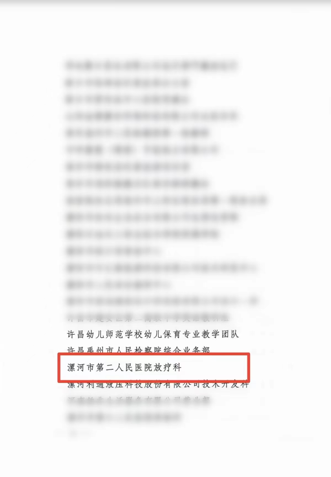 近日,共青團河南省委等部門聯合印發(fā)了《關于命名“2021-2022年度河南省青年文明號和河南省青年崗位能手”的決定》,市二院放療科被授予河南省“青年文明號”榮譽稱號。