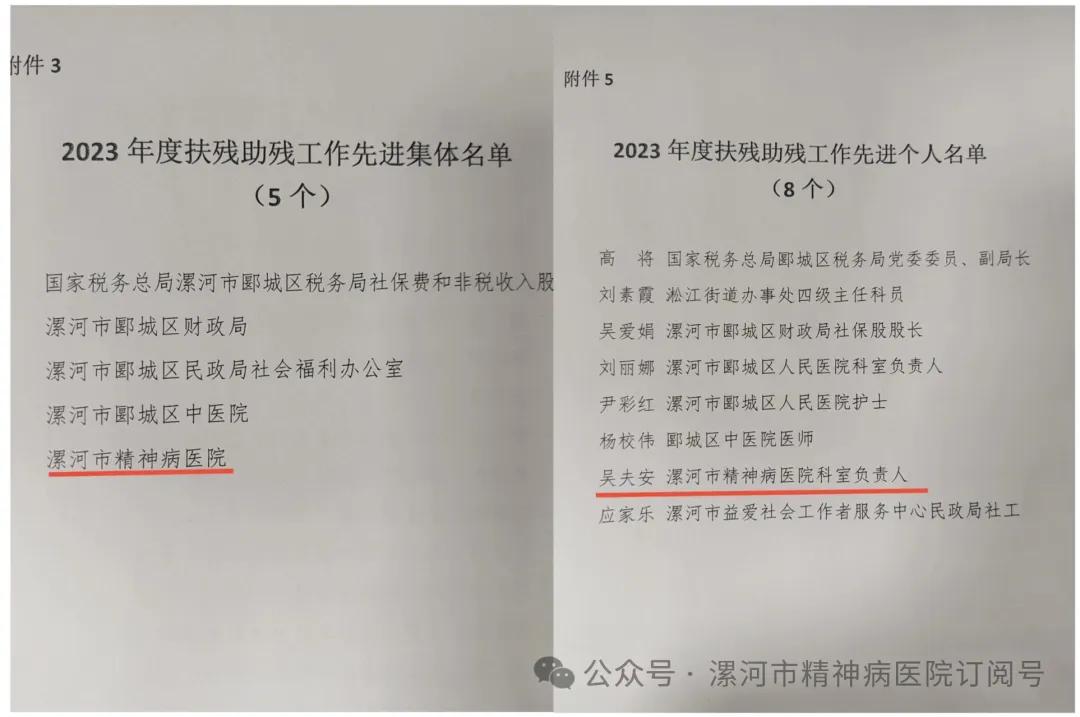 漯河市精神病醫(yī)院獲得“2023年度扶殘助殘工作先進(jìn)集體