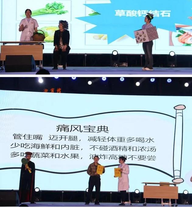 現(xiàn)場醫(yī)護(hù)人員展示的《與“食”俱進(jìn) “石”不再來》《燃燒我的卡路里》《過量飲酒 “肝”敗下風(fēng)》《惹不起的痛風(fēng)君》《當(dāng)胸痛來臨時(shí)》《美麗的陷阱》等作品,形式新穎,采用情景劇、順口溜、快板等生動活潑、詼諧有趣的表演方式,圍繞健康生活方式、營養(yǎng)健康知識、慢性病防治等主題,進(jìn)行通俗易懂、生動形象地講解,贏得現(xiàn)場評委和線上線下觀眾一致好評。