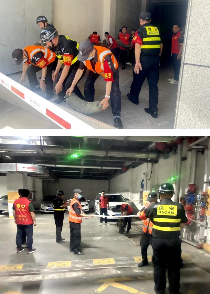 演練模擬漯河市區(qū)出現持續(xù)強降雨天氣,由于短時間降雨量過大,因管網排水不暢,造成雨水倒灌,致使地下車庫、配電間等重點地下空間區(qū)域進水?,F場值班發(fā)現險情,報告防汛總指揮,總指揮迅速啟動防汛搶險應急預案,組織防汛搶險預備隊進行搶險,其他各組各司其職,同心協力處置險情。