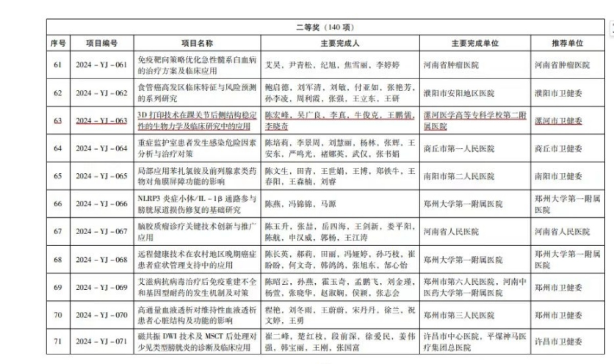 2024年度河南醫(yī)學(xué)科技獎"出爐",漯河市骨科醫(yī)院"中獎"三個項(xiàng)目!
