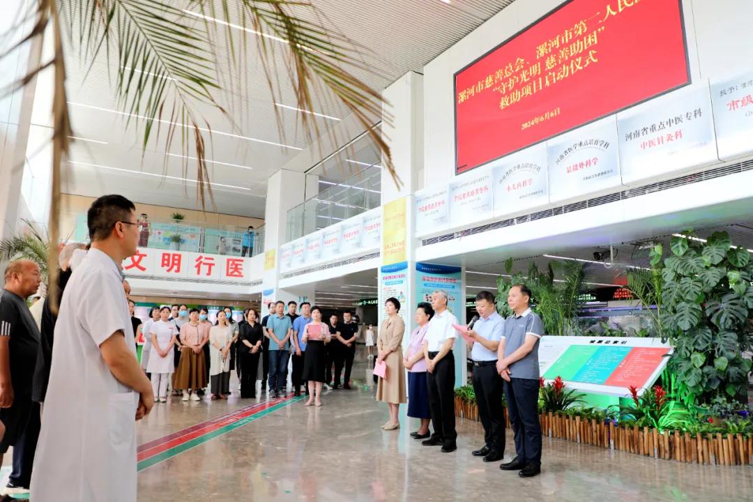 黨委書記魏松致辭并宣布項目啟動,他表示:市二院眼科作為醫(yī)院重點發(fā)展學科之一,科室團隊能夠熟練開展白內障超聲乳化+人工晶體植入術,近年來已經開展有5000余例,術后效果良好,復明率達99%以上。同時,醫(yī)院將此項工程納入年度重點工作予以全力支持,將全力做好項目報名、審核、手術、結算等環(huán)節(jié),把此項工程打造成民心工程和示范工程,切實履行社會責任助力現(xiàn)代化漯河三城建設新征程。