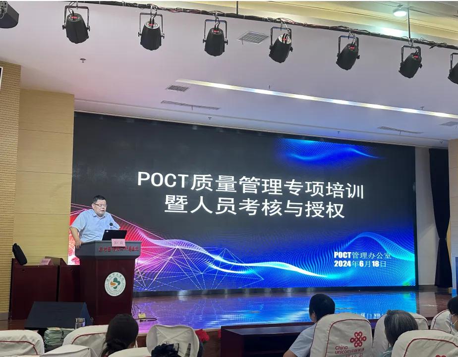 POCT委員會辦公室主任郭改玲強調(diào),按照《GBT29790-2020 即時檢測質(zhì)量和能力的要求》 ,我院對POCT設(shè)備、人員實行統(tǒng)一管理,本次會議對全院POCT設(shè)備操作人員進行培訓、考核與授權(quán),保障了醫(yī)療質(zhì)量與安全。
