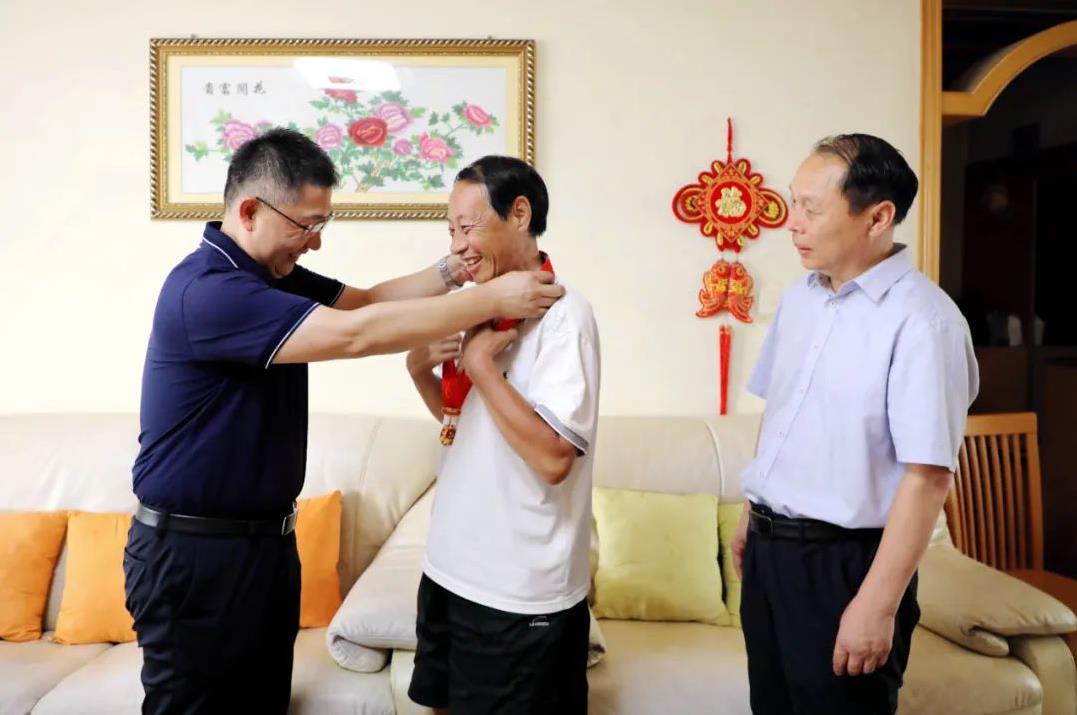慰問過程中,王向良同志為謝學(xué)政同志戴上沉甸甸的紀(jì)念章,關(guān)切詢問謝學(xué)政同志及其家人的生活和身體狀況。孟德陽同志受院黨委的委托,向謝學(xué)政同志為醫(yī)院的發(fā)展所做出的辛勤付出、無私奉獻(xiàn)表達(dá)了衷心感謝,叮囑他保重身體,今后有什么困難要及時告知醫(yī)院,醫(yī)院是他永遠(yuǎn)的后盾,并希望他一如既往地關(guān)心醫(yī)院工作,為醫(yī)院高質(zhì)量發(fā)展積極建言獻(xiàn)策。