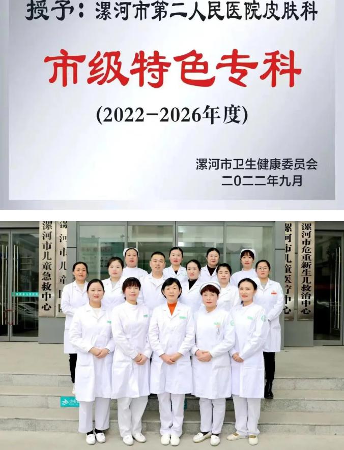 皮膚科經(jīng)過40多年的發(fā)展,目前為漯河市規(guī)模較大、技術(shù)力量雄厚的市級特色??疲?020年掛牌“漯河市皮膚病醫(yī)院”,是中國醫(yī)學(xué)科學(xué)院、北京協(xié)和醫(yī)院皮膚病研究所、中南大學(xué)湘雅醫(yī)院、河南省人民醫(yī)院、河南省中醫(yī)藥大學(xué)第一附屬醫(yī)院等皮膚專科聯(lián)盟單位。先后榮獲河南省青年文明號、漯河市青年文明號等榮譽稱號。