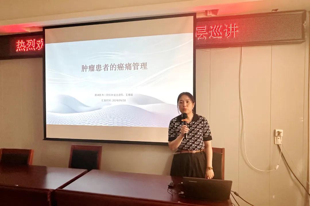 王惠娟主管護(hù)師以《腫瘤患者癌痛規(guī)范化管理》為主題,分享了腫瘤患者癌痛的規(guī)范化管理、評(píng)估,藥物的三階梯,常見(jiàn)的止疼藥應(yīng)用過(guò)程中的誤區(qū)以及中醫(yī)護(hù)理適宜技術(shù)在癌痛中的應(yīng)用等內(nèi)容。