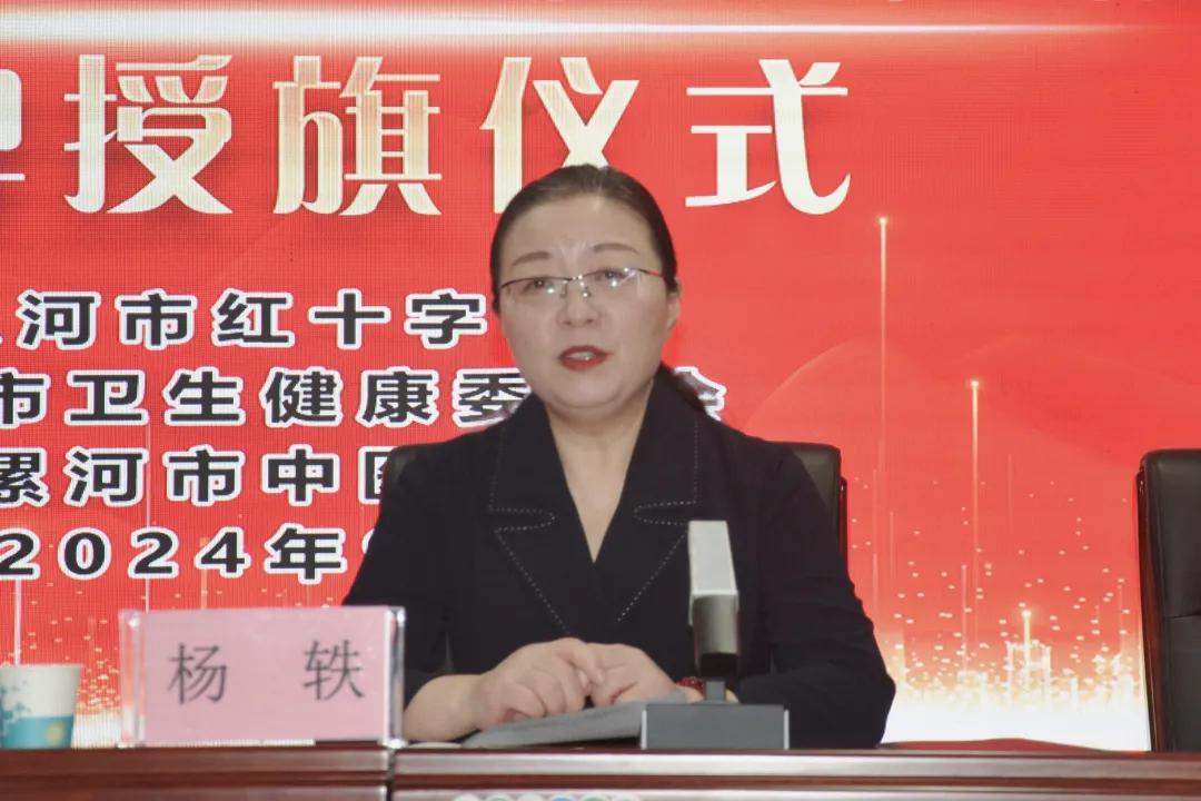為積極響應(yīng)社會(huì)公益號(hào)召,弘揚(yáng)紅十字精神,促進(jìn)醫(yī)療衛(wèi)生與志愿服務(wù)深度融合,2024年9月25日上午,市紅十字會(huì)、市衛(wèi)健委聯(lián)合市中醫(yī)院在醫(yī)院門診四樓學(xué)術(shù)報(bào)告廳隆重舉辦“喜迎國慶 志愿同行——漯河市中醫(yī)院紅十字志愿服務(wù)隊(duì)揭牌授旗儀式”。市紅十字會(huì)黨組書記、常務(wù)副會(huì)長(zhǎng)孫潁華,市衛(wèi)健委黨組副書記、副主任王向良,市中醫(yī)院黨委書記楊軼,市中醫(yī)院黨委副書記、副院長(zhǎng)楚勝,市紅十字會(huì)黨組成員、副會(huì)長(zhǎng)李世杰出席揭牌授旗儀式。各縣區(qū)、功能區(qū)紅十字會(huì)負(fù)責(zé)同志、市直醫(yī)療衛(wèi)生機(jī)構(gòu)和漯河醫(yī)專各附屬醫(yī)院分管領(lǐng)導(dǎo)以及市中醫(yī)院志愿者職工代表近200人參加。會(huì)議由楚勝主持。
