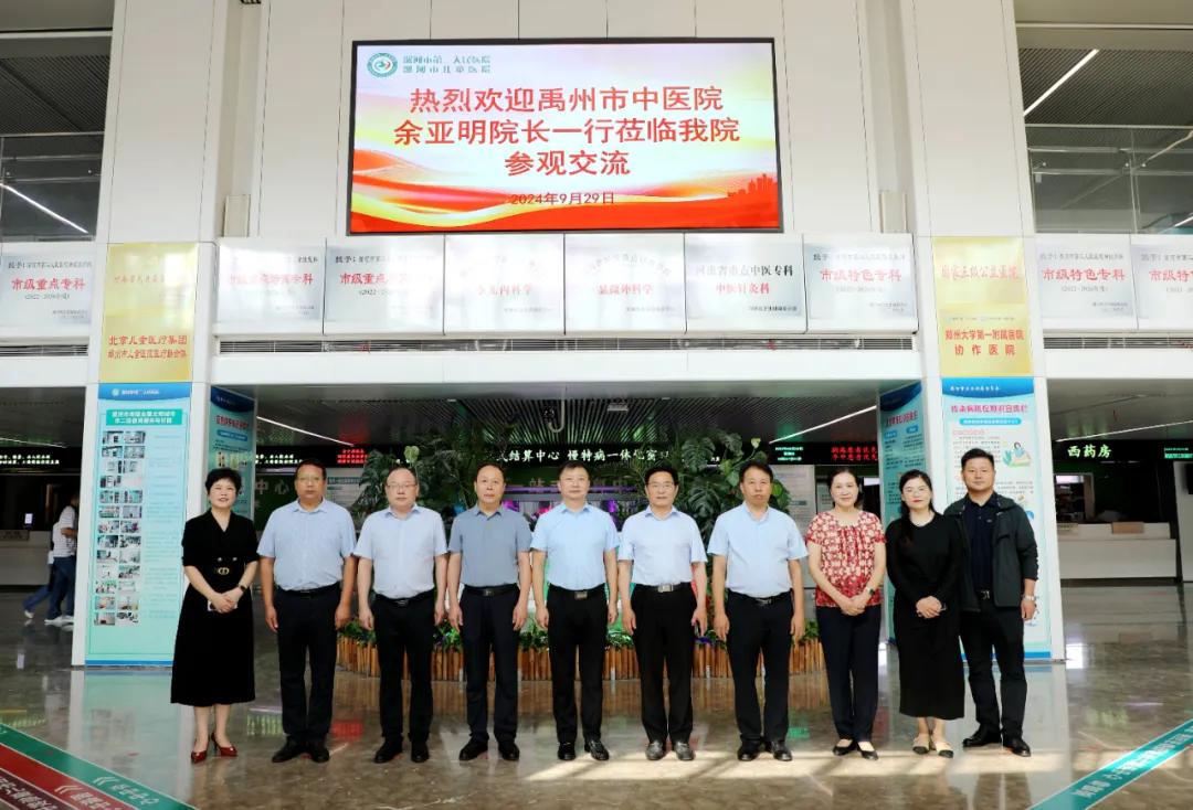 金風(fēng)送爽,攜手同行。9月29日上午,禹州市中醫(yī)院院長余亞明、業(yè)務(wù)院長耿建領(lǐng)、副院長夏瓊玉、醫(yī)務(wù)科科長李帥奇一行蒞臨市二院參觀交流。市二院黨委書記魏松,紀(jì)委書記孟德陽,副院長張曉東、李世學(xué)、劉橋及相關(guān)職能科室負責(zé)同志陪同交流。