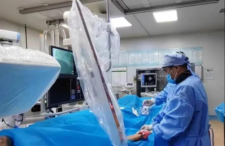接診醫(yī)院急診科醫(yī)生與家屬溝通后,緊急派車把病人轉(zhuǎn)至我院。同時(shí),我院急診醫(yī)學(xué)科、介入手術(shù)室迅速響應(yīng)密切配合,心血管內(nèi)科二病區(qū)董艷彩主任、馬彥輝副主任在導(dǎo)管室同步做好準(zhǔn)備等待病人,最大程度為病人爭(zhēng)取更多時(shí)間。