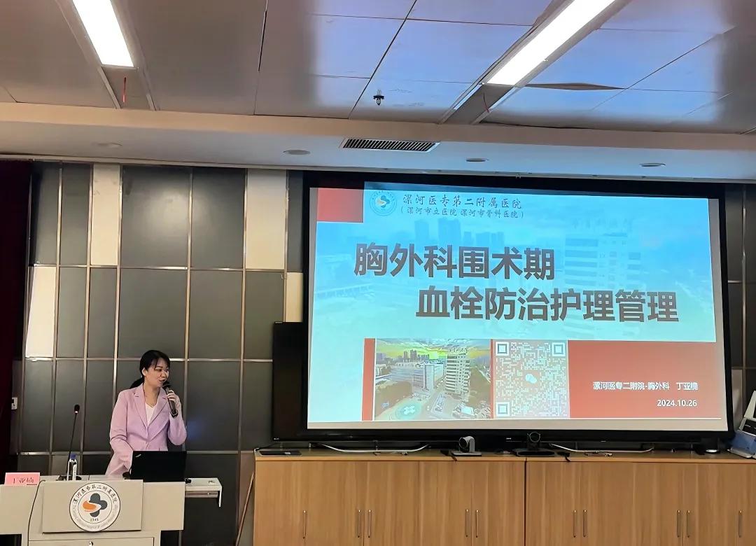 丁亞楠護士長以《胸外科圍術(shù)期血栓防治護理管理》為題,講述胸外科血栓防治護理管理是確保患者圍術(shù)期安全的重要環(huán)節(jié),需要貫穿患者術(shù)前、術(shù)中、術(shù)后及出院后的全過程,通過全面的評估、個性化的預(yù)防措施、密切的病情觀察和有效的抗凝治療手段,降低血栓形成的風險,確?;颊叩陌踩?。醫(yī)護不分家,醫(yī)療團隊及護理團隊的共同發(fā)展才能促進專科建設(shè)的發(fā)展,丁亞楠護士長促使胸外護理團隊的專科建設(shè),對VTE的防治管理規(guī)范管理,為胸外的發(fā)展提供助力。