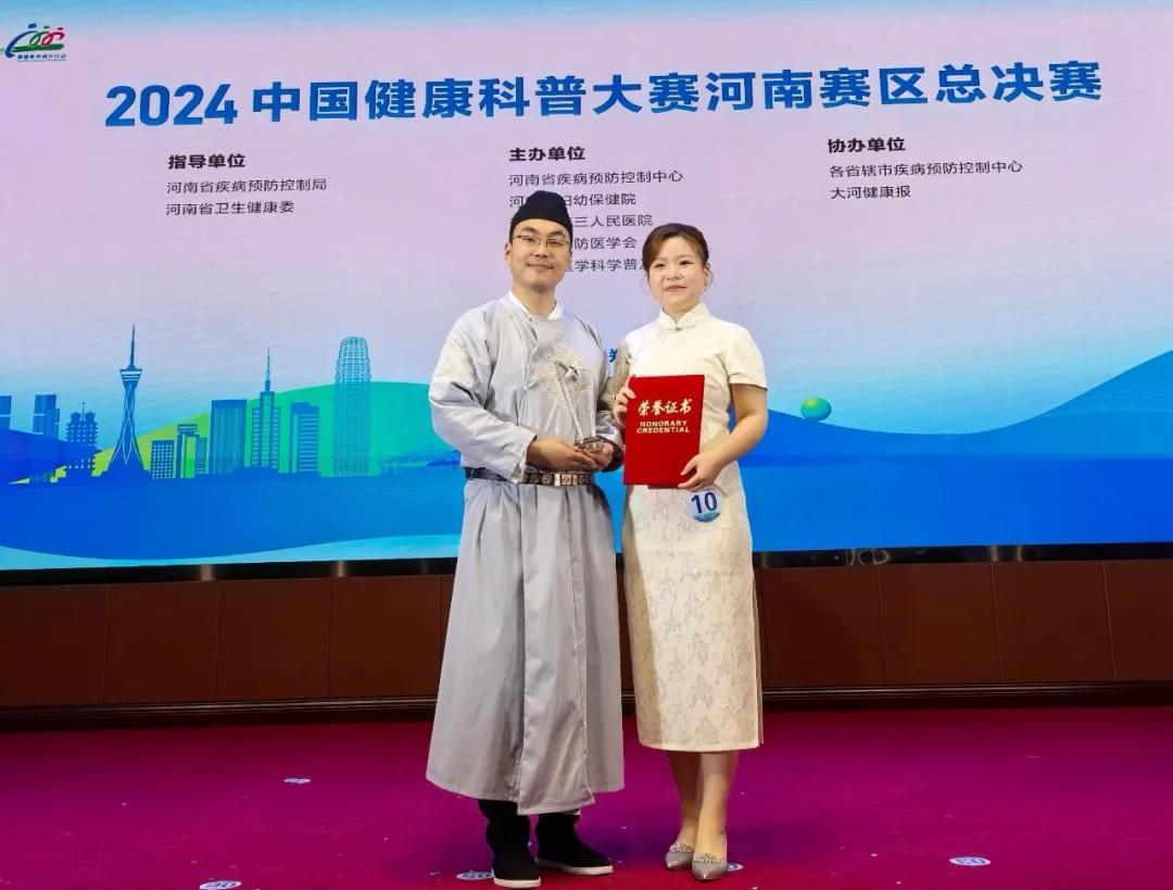 10月28—29日,2024中國(guó)健康科普大賽河南賽區(qū)總決賽在鄭州圓滿(mǎn)落下帷幕。大賽圍繞“傳染病、慢性病、婦幼健康、五大衛(wèi)生”四大主題展開(kāi)激烈角逐,歷經(jīng)層層選拔,64部佳作晉級(jí)健康科普總決賽,其中在“五大衛(wèi)生及其他”專(zhuān)場(chǎng)中,漯河市中醫(yī)院李本心、包亞沖攜作品《穿越千年話(huà)藥膳》榮獲二等獎(jiǎng),白冰及作品《花間語(yǔ)茶》榮獲三等獎(jiǎng)。