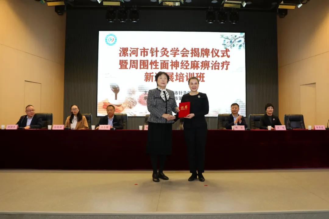 隨后,各參會(huì)領(lǐng)導(dǎo)向漯河市針灸學(xué)會(huì)會(huì)長、副會(huì)長頒發(fā)了證書。