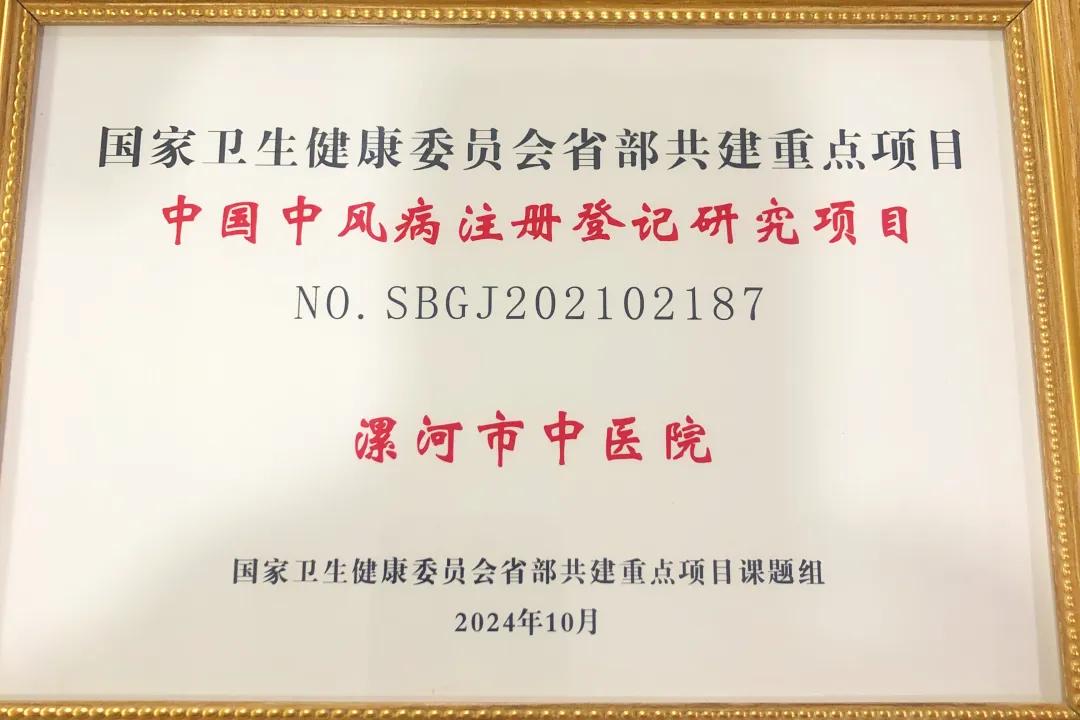 近日,漯河市中醫(yī)院被榮幸選拔為國家衛(wèi)生健康委員會省部共建重點項目課題組協(xié)助單位,首次參與了中國中風(fēng)病注冊登記研究項目。