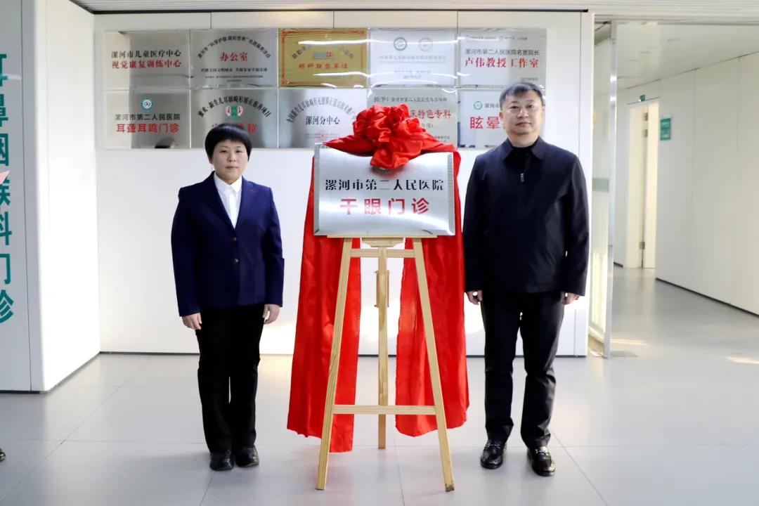 儀式現(xiàn)場(chǎng),黨委書記魏松與院長(zhǎng)胡海英共同為“漯河市第二人民醫(yī)院干眼門診”揭牌。