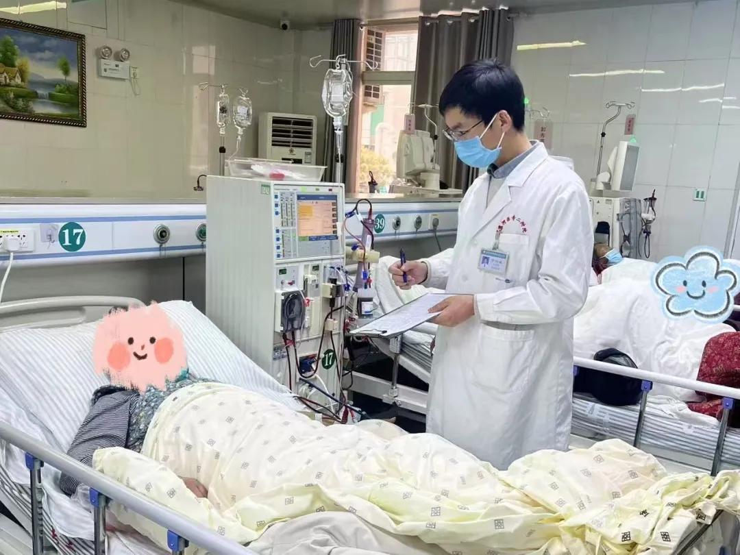 在日常工作中,賈醫(yī)生對待每一位患者都認真負責。透析治療流程復雜,他卻一絲不茍。從仔細查看患者狀況、熟練進行上機操作,到根據每位患者的身體狀況制定個性化的透析方案,每一個環(huán)節(jié)都凝聚著他的專業(yè)與專注。透析時間漫長,分上午、下午、晚上進行,每次長達 4 小時,賈醫(yī)生始終堅守在透析室,時刻關注患者情況,耐心解答患者的疑問,及時調整治療方案。他的專業(yè)和負責,不僅讓患者安心,也吸引了眾多患者家屬前來找他看病。