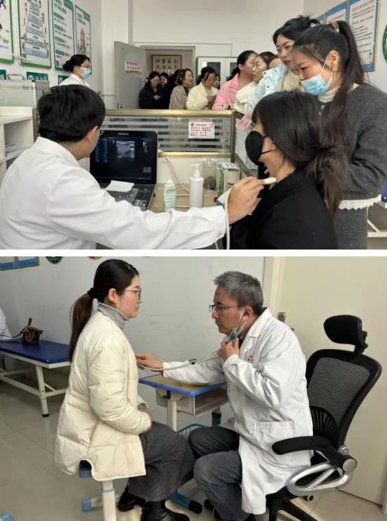 義診活動現(xiàn)場,醫(yī)療志愿者們?yōu)榕搪毠っ赓M(fèi)提供血壓測量、甲狀腺彩超、體格檢查、用藥指導(dǎo)、健康咨詢、疾病診斷等服務(wù),發(fā)放健康知識手冊。同時針對女教職工健康狀況和需求,提供個體化的健康建議和詳細(xì)的治療方案。此次共義診100余人,發(fā)放健康宣傳資料300 余份。
