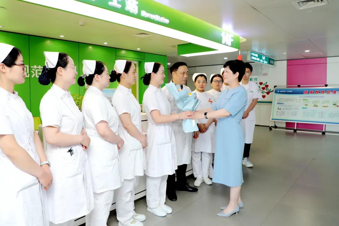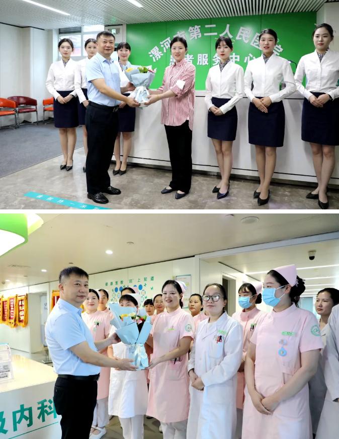 關(guān)愛護(hù)士隊(duì)伍,守護(hù)人民健康。5月12日上午,為慶祝第114個(gè)“5·12”國(guó)際護(hù)士節(jié),市二院黨委書記魏松,黨委副書記、院長(zhǎng)胡海英攜院班子成員及相關(guān)職能科室負(fù)責(zé)人深入臨床一線開展節(jié)日慰問(wèn)活動(dòng),向全院護(hù)理工作者送去鮮花,并致以節(jié)日的祝福和誠(chéng)摯的問(wèn)候。