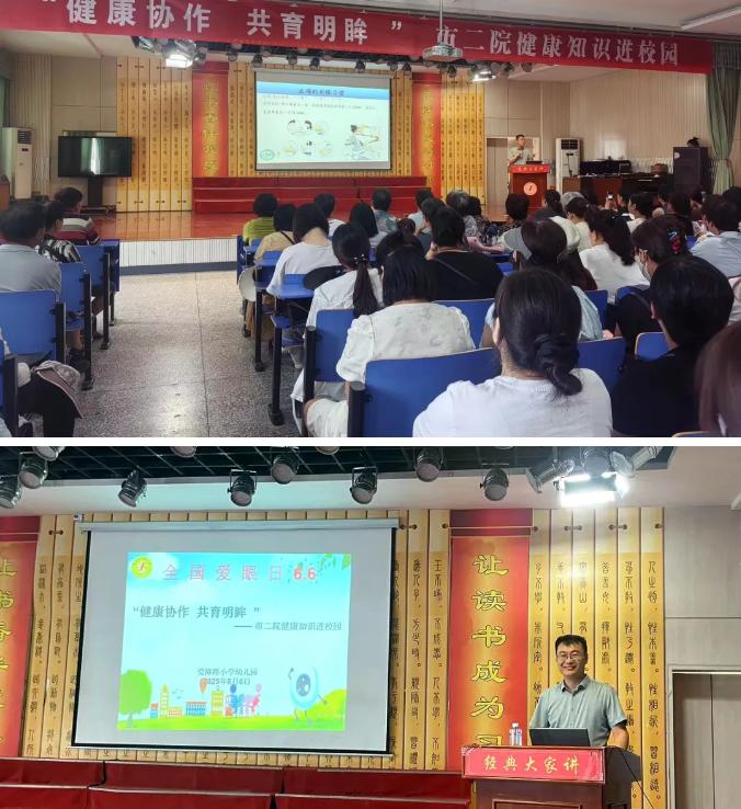 眼科主任李立應(yīng)邀走進受降路幼兒園家長課堂,開展眼健康科普講座。他以《兒童常見眼病的診斷和治療》為題,用通俗易懂的語言詳細講解了兒童常見的近視、斜視、弱視、上瞼下垂和眼瞼內(nèi)翻倒睫,以及這些眼病對孩子們視力發(fā)育的影響。李立主任強調(diào),幼兒時期是視力發(fā)育的關(guān)鍵階段,家長要注意培養(yǎng)孩子良好的用眼習(xí)慣,嚴(yán)格控制孩子使用電子產(chǎn)品,保證充足的戶外活動。針對家長們提出的熱點問題,李立主任一一耐心解答,給出個性化建議。