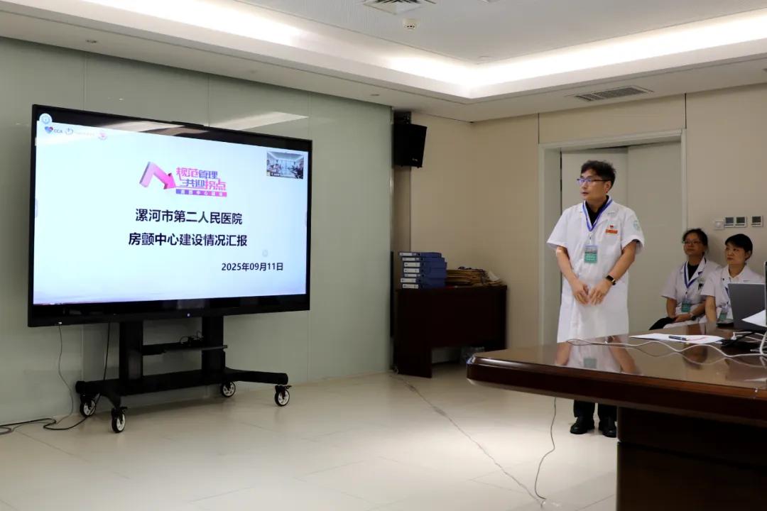 現(xiàn)場核查階段,市二院房顫中心負責人、心血管內科病區(qū)主任李慧新從醫(yī)院基本情況、心血管內科概況、房顫中心建設概況以及對房顫中心建設項目的建議四個方面進行了匯報。
