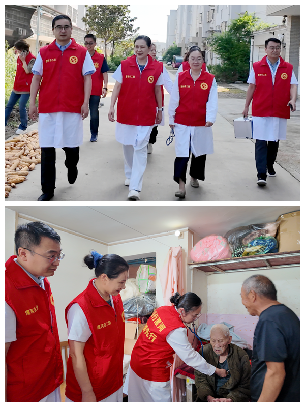 在得知村中兩名百歲老人因行動不便無法前往義診現(xiàn)場后,全國先進(jìn)工作者、全國“五一”勞動獎?wù)芦@得者、中醫(yī)針灸科主任朱青霞帶領(lǐng)醫(yī)護(hù)人員上門為老人服務(wù),進(jìn)行血壓、血糖測量,心電圖檢查,詢問日常飲食和作息情況等,并根據(jù)老人的身體狀況給予了針對性的建議和康復(fù)指導(dǎo)。醫(yī)護(hù)人員還為老人講解了常見疾病的預(yù)防知識,叮囑老人要注意保暖、合理飲食。老人及其家屬對市二院專家團(tuán)隊的上門服務(wù)感激不已,連聲道謝。
