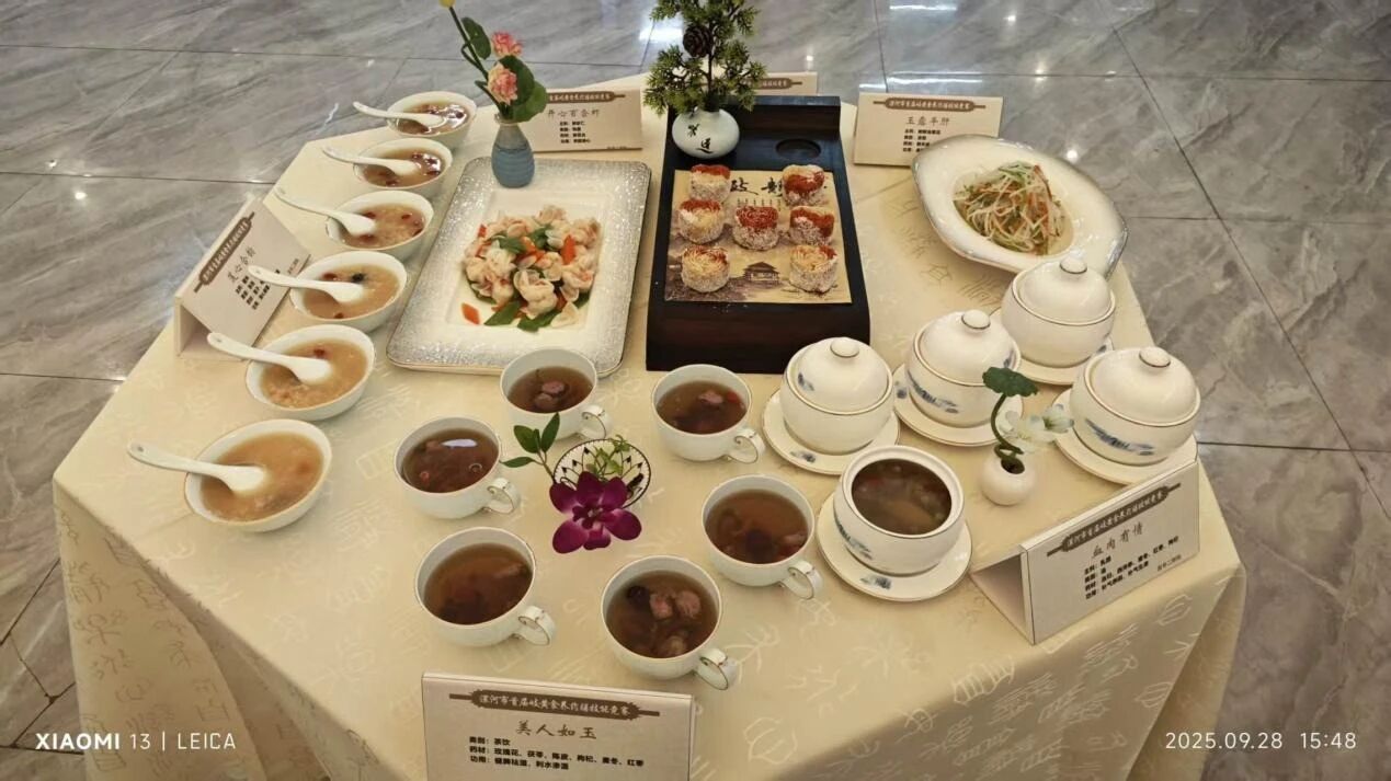 經(jīng)過(guò)激烈角逐,團(tuán)隊(duì)?wèi){借“開(kāi)心百合蝦”“玉芝云糕”“玉露平肝”“血肉有情”“美人如玉”等一系列兼具養(yǎng)生功效與美味口感的藥膳作品(如圖中展示的精美藥膳,涵蓋熱菜、涼菜、面點(diǎn)、湯品、茶飲等多種類(lèi)型),從眾多參賽隊(duì)伍中脫穎而出,成功斬獲團(tuán)體二等獎(jiǎng),與漯河技師學(xué)院共享這一榮譽(yù),充分彰顯了醫(yī)院在食養(yǎng)藥膳領(lǐng)域的綜合實(shí)力。