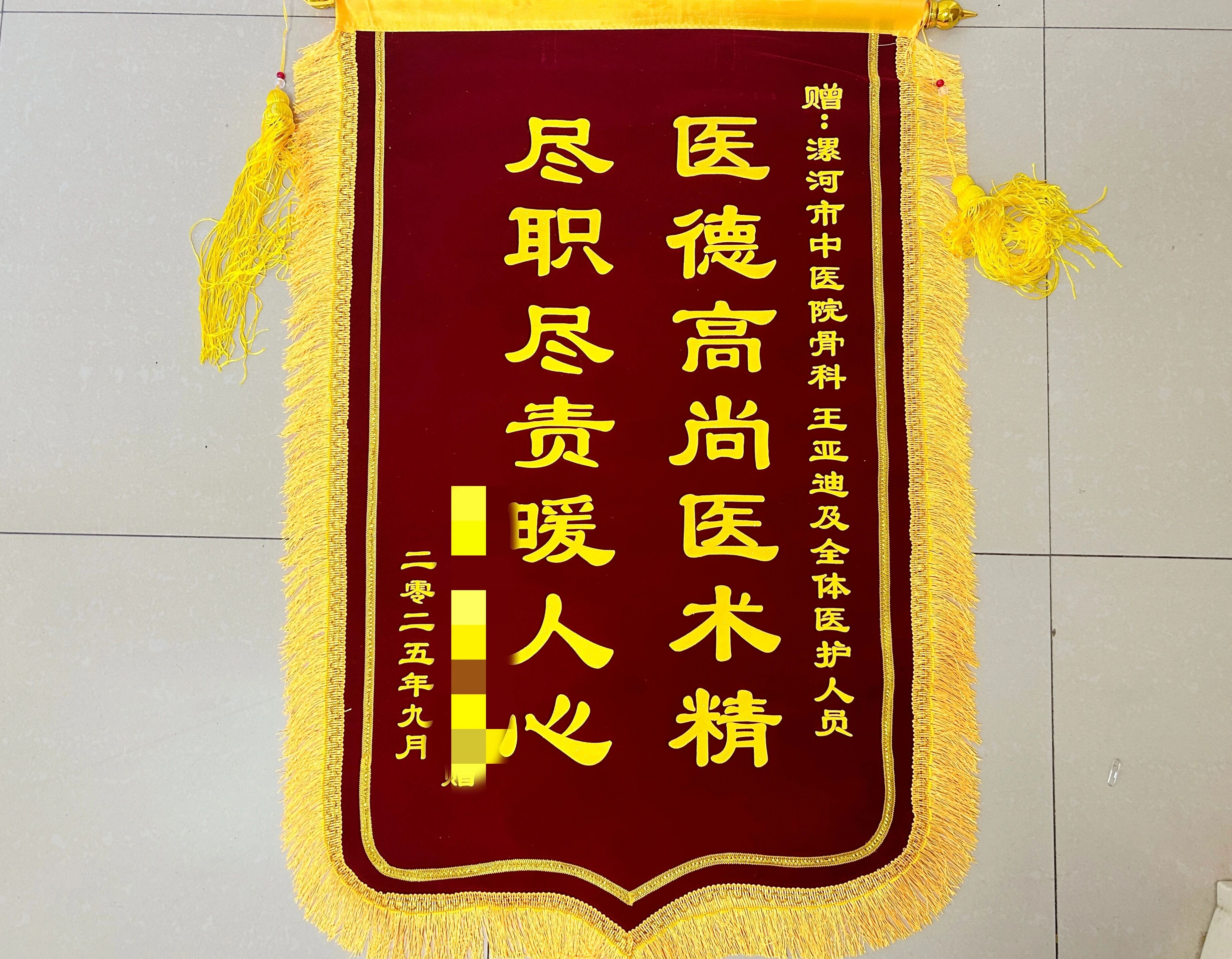 一周內(nèi),漯河市中醫(yī)院骨科接連收到三面錦旗,這不僅是對醫(yī)護人員專業(yè)技術(shù)的肯定,更飽含著醫(yī)患之間真摯的情誼。