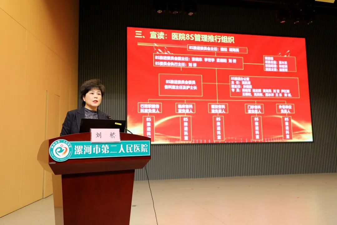 副院長(zhǎng)劉橋宣讀了醫(yī)院8S管理目的與推行組織架構(gòu),通過(guò)明確管理目標(biāo)與責(zé)任分工,讓全體參會(huì)人員清晰知曉8S推行的核心方向與執(zhí)行體系,為后續(xù)工作劃定“路線圖”。