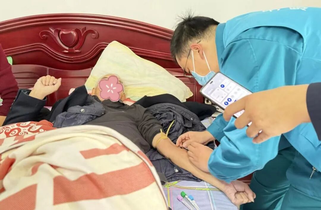 76歲的老人在外地接受膽管癌手術(shù)后返家休養(yǎng),身上仍攜帶兩根術(shù)區(qū)引流管。11月12日早上,家屬突然發(fā)現(xiàn)引流液呈血性,并緊急與主管醫(yī)生溝通后,醫(yī)生建議立即進(jìn)行血常規(guī)和凝血功能檢測(cè),明確病情變化??稍摶颊邉傋鐾晔中g(shù),身體虛弱,行動(dòng)不便,往返醫(yī)院的路程對(duì)他來說無疑是一種煎熬,焦急的家屬只好匆匆趕往漯河醫(yī)專二附院求助。急診科醫(yī)護(hù)人員幫助家屬通過“豫健護(hù)理到家”平臺(tái)完成下單操作,經(jīng)驗(yàn)豐富的陳笑寒護(hù)士長(zhǎng)與護(hù)士李鵬舉第一時(shí)間攜帶專業(yè)采血設(shè)備和護(hù)理包,火速趕往患者家中,緩解了患者與家屬的燃眉之急。(盧 闖 劉 旭 袁錦鈺)