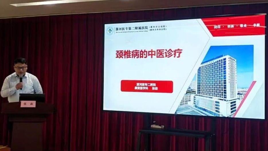 漯河醫(yī)專二附院康復(fù)醫(yī)學(xué)科主治醫(yī)師張森圍繞《頸椎病的中醫(yī)診療》開始講述。主要診療以“辨證施治、標本兼顧”為原則:辨證常見寒濕阻絡(luò)、氣滯血瘀、肝腎虧虛、氣血不足四型,通過望聞問切精準分型;治療以通經(jīng)活絡(luò)、散寒止痛、補益肝腎為核心,常用針灸、中藥內(nèi)服,配合艾灸、拔罐、牽引等外治法,同時強調(diào)避風(fēng)寒、調(diào)姿勢、練功法的日常調(diào)護,從根源改善頸部氣血運行與筋骨功能。
