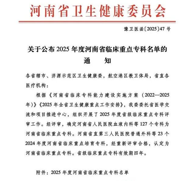 近日,河南省衛(wèi)生健康委發(fā)布《關(guān)于公布2025年度河南省臨床重點名單的通知》(豫衛(wèi)醫(yī)函〔2025〕47號),漯河醫(yī)專二附院(漯河市骨科醫(yī)院、漯河市立醫(yī)院)運動醫(yī)學科與護理??瞥晒νㄟ^評審被確定為河南省臨床重點???。漯河醫(yī)專二附院再添兩個省級臨床重點??疲瑯酥局@兩大??圃卺t(yī)療技術(shù)、科研創(chuàng)新、服務(wù)質(zhì)量及區(qū)域影響力等方面達到省內(nèi)領(lǐng)先水平。