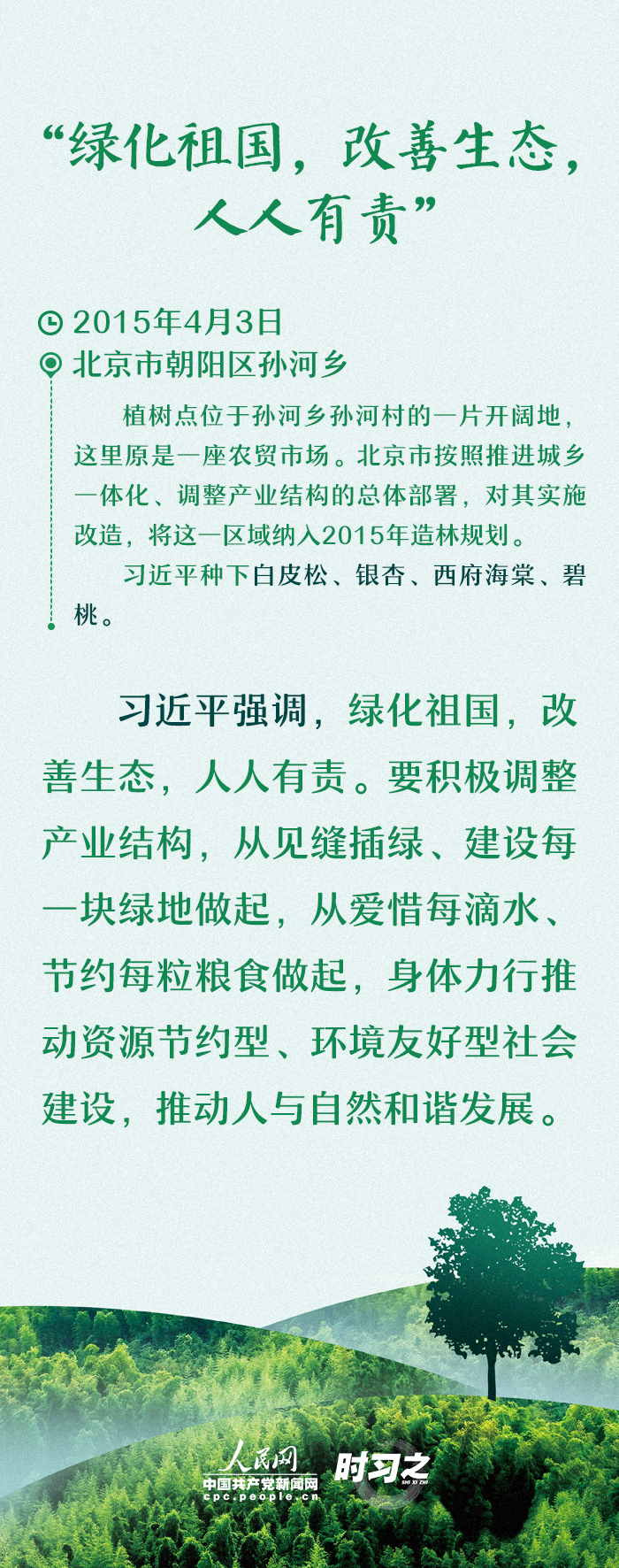 春風吐綠、草木初萌,又是一年植樹節(jié)。“造林綠化是功在當代、利在千秋的事業(yè)” “前人栽樹,后人乘涼”……黨的十八大以來,習近平總書記每年都會參加義務(wù)植樹活動,并多次談到植樹造林的重大意義。過去九年間,習近平總書記都在哪里植樹?種了哪些樹?每次植樹都講了些什么,一起來回顧。