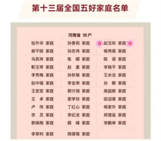 5月15日,全國婦聯(lián)表彰997戶全國五好家庭,鄭州市3戶家庭上榜,高新區(qū)石佛辦事處趙玉珍家庭獲得第十三屆“全國五好家庭”榮譽(yù)稱號。