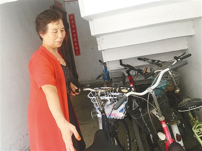田愛(ài)雪將停放在樓梯間的自行車(chē)移到外面。