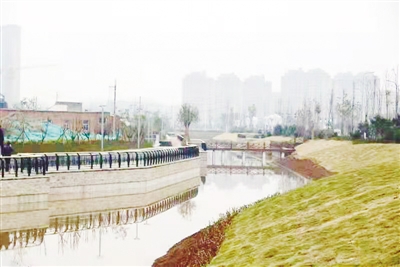 目前,全長(zhǎng)1.1公里的幸福渠交通北路工程建設(shè)已經(jīng)大頭落地,成效顯著。工程共開(kāi)挖明渠900米,建設(shè)公廁一座、觀(guān)景平臺(tái)3處、沉井6座、過(guò)路頂管200米,渠道平均寬約8米至10米,水深1.5米至1.7米,綠化面積3.7萬(wàn)平方米,11月26日已經(jīng)正式通水。在現(xiàn)場(chǎng)采訪(fǎng)時(shí),記者看到渠水蕩漾,白橋橫臥,三三兩兩的市民沿著渠岸一邊散步,一邊觀(guān)賞風(fēng)景。昔日荒草地,如今景色如畫(huà)。