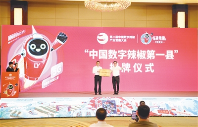 第二屆中國(guó)數(shù)字辣椒產(chǎn)業(yè)發(fā)展大會(huì)上,中國(guó)蔬菜流通協(xié)會(huì)正式將“中國(guó)數(shù)字辣椒第一縣”牌匾授予臨潁縣。記者 范子恒 攝