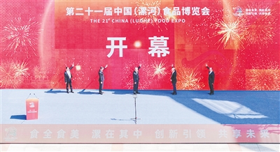 劉尚進(jìn)宣布第二十一屆中國(guó)(漯河)食品博覽會(huì)開(kāi)幕。姜明、馬勇、楚玉峰、歐孟、黃鈁共同為大會(huì)啟幕。