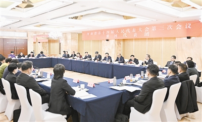 1月18日下午,省十四屆人大三次會議漯河代表團召開全體會議,審議省政府工作報告,審查計劃報告、預算報告及相關草案。記者 焦海洋 攝