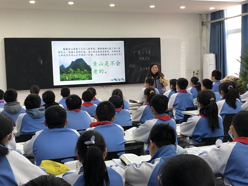 六年級的李敏杰老師,給我們帶來了《青山不老》。李老師課堂節(jié)奏緊湊,注重知識的連貫性,熟練的運用多媒體教學,渲染氛圍,吸引學生注意力調(diào)動學生積極性!學生們預習認真,整節(jié)課自學氛圍很濃厚。