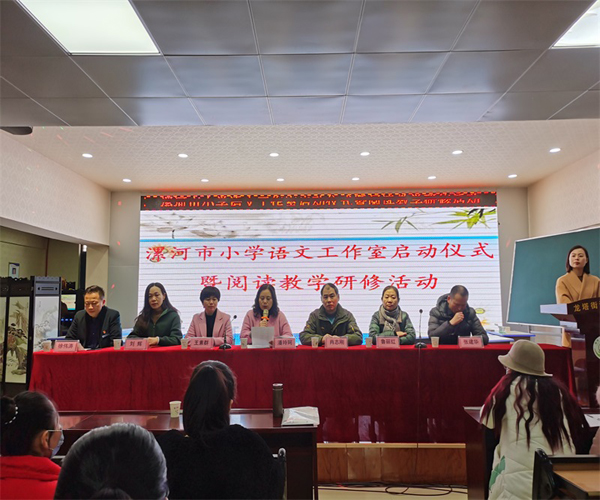 為進(jìn)一步加強(qiáng)漯河市小學(xué)語文名師工作室建設(shè),充分發(fā)揮名師工作室的引領(lǐng)輻射作用,12月2日,漯河市小學(xué)語文工作室啟動儀式暨閱讀教學(xué)研修活動在龍塔街道西南街小學(xué)舉行。漯河市基礎(chǔ)教研室副主任、教研員潘玲珂,各縣區(qū)教研室教研員及部分小學(xué)語文教師參與了工作室啟動儀式暨閱讀教學(xué)研修活動。活動在西小校長徐偉濤的致辭中拉開帷幕。
