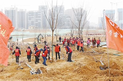 2月22日,我市開展春季義務植樹活動。圖為沙澧河二期綜合整治項目基地植樹現(xiàn)場。